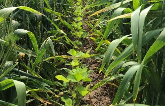 Winterweizen und Soja als Staffelkultur. Quelle: Reto Minder, SWISS NO-TILL.