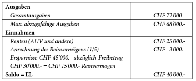 Alle Details und weitere Zahlenbeispiele finden Sie im Merkblatt 5.01 Ergänzungsleistungen, welche Sie mit einer einfache Internetrecherche finden können.