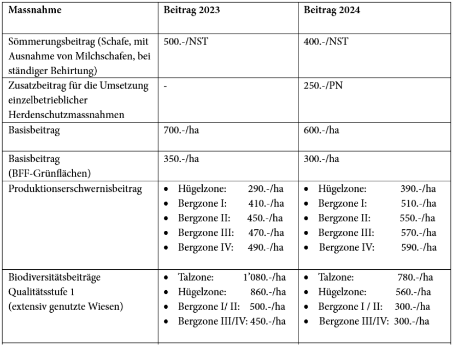 Der Beitrag für die längere Nutzungsdauer von Kühen wird ebenfalls ab diesem Jahr eingeführt. Der Bewirtschafter oder die Bewirtschafterin muss sich nicht vorher in GELAN anmelden, da dies automatisch geschieht. Die Daten werden der TVD entnommen und entsprechen der durchschnittlichen Abkalbung pro geschlachtete Kuh in den drei vorangegangenen Kalenderjahren.