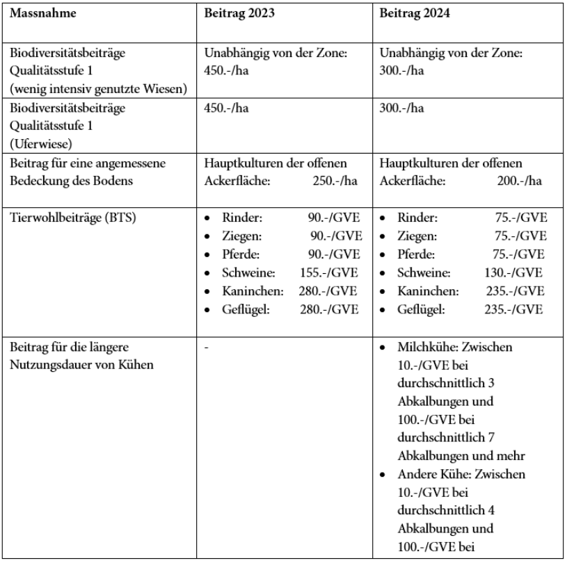 Nach der Verabschiedung des landwirtschaftlichen Verordnungspakets am 1. November 2023 wurden einige technische Vorschriften sowie einige Beiträge geändert.