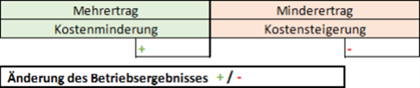Warum sollte man dieses Instrument nutzen? Eine technische oder organisatorische Veränderung hat immer Auswirkungen im wirtschaftlichen Bereich. Dieser Ansatz ermöglicht es, diese Auswirkungen auf das Ergebnis eines Unternehmens oder eines Betriebszweiges angemessen abzuschätzen.