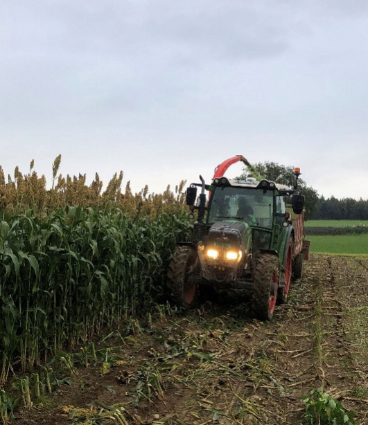 Für den Versuch wurde ein Körnersorghum gewählt, um eine ausreichende Qualität für die Fütterung von Milchkühen zu gewährleisten. Die Erträge waren niedrig (mehr als halb so hoch wie bei Mais), aber die Bedingungen im Frühjahr 2024 waren für Sorghum ungünstig. Sein Vorteil ist sicherlich, dass er heißen und trockenen Sommern besser standhält, aber zu Beginn der Vegetation einen höheren Wärmebedarf hat.