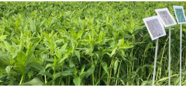 bestand aus Ramtillkraut (Guizotia) und Alexandrinerklee, die zweite aus Sorghum, Buchweizen und erneut Ramtillkraut (Guizotia).