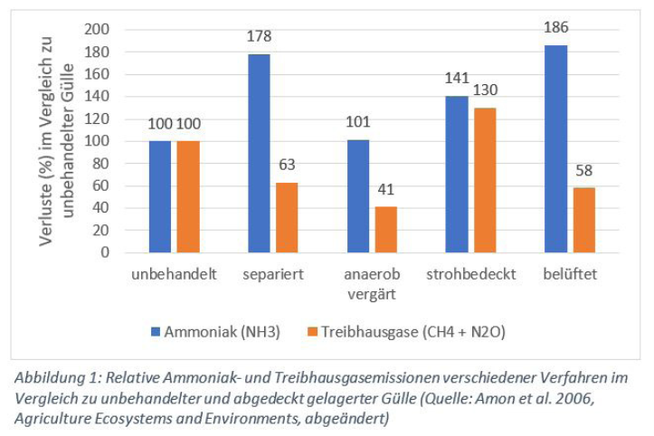 Jedoch können die Treibhausgasemissionen bei der Lagerung und Ausbringung entscheidend reduziert werden (Abbildung 1).