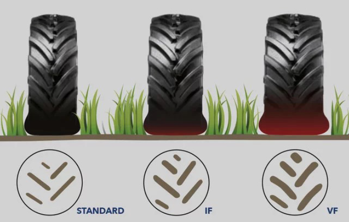Die Inschrift IF (Improve Flexion) oder VF (Very High Flexion) bedeutet verbesserte Verformbarkeit und höhere Tragkraft. Im Vergleich zu Standardreifen können sie die gleiche Last mit einem um 20 bis 40 % geringeren Reifeninnendruck tragen oder bei gleichem Druck 20 bis 40 % mehr Last aufnehmen. Dadurch kann der Luftdruck zur Bodenschonung reduziert werden, dies ohne das Risiko einer Beschädigung des Reifens und somit wird die Kontaktfläche zwischen Reifen und Boden vergrössert.