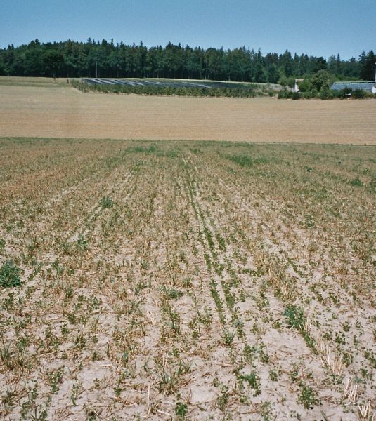 Das Getreide als Deckfrucht spendete Schatten, konkurrenzierte aber auch das vorhandene Wasser. Alle Parzellen wurden für den ersten Schnitt in Juni gemäht. Der erste Schnitt war ertragreich. Der Ertrag des zweiten Schnitts lieferte reichaltige Indizien über den Einfluss von Saatgut und Getreide.