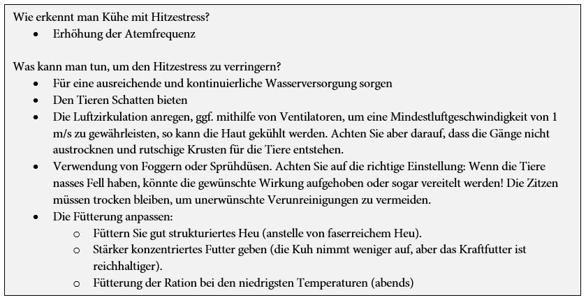 Hitzestress (durch Hitze oder Kälte) ist also abschwächbar, wenn man auf das Verhalten seiner Tiere achtet und Massnahmen ergreift, um die Auswirkungen der Hitze abzumildern. Zum Abschluss unserer Artikelserie über Stress bei Rindern werden wir beim nächsten Mal den durch das Management einer Herde verursachten Stress besprechen.