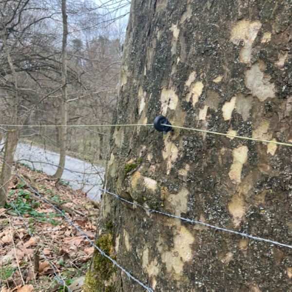 Il est nécessaire de planter des piquets devant les arbres pour y fixer les isolateurs. Cet usage vaut également pour tous les boisements et arbres en dehors de la forêt. La fixation des isolateurs dans l’arbre peut endommager le tronc et entraver sa croissance. Ce cas est également réglé par l’article 32 du RFCN.