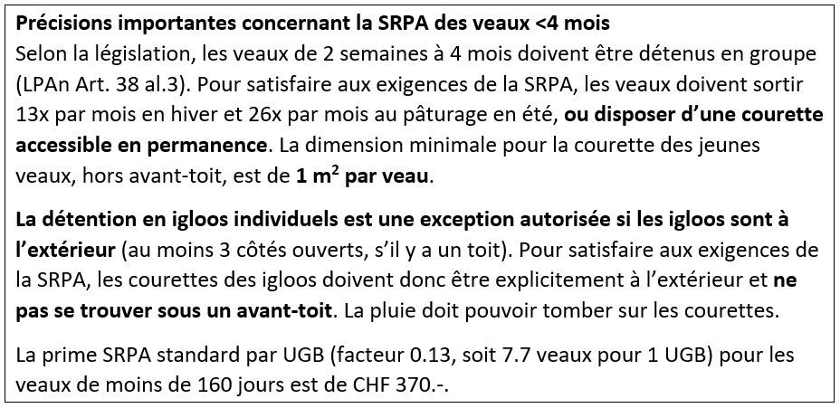 - SRPA nécessaire pour toutes les catégories bovines, y compris les veaux en-dessous de 4 mois.