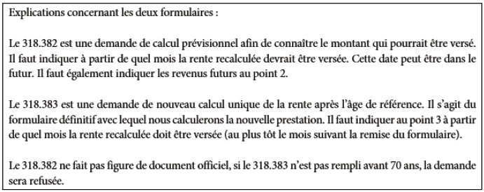 • 318.382 Demande de calcul prévisionnel après l’âge de référence en cas de poursuite de l’activité lucrative