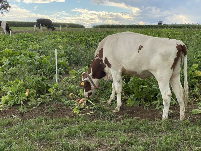 Les grandes graminées en C4 ont été pâturées plus ou moins volontiers notamment grâce aux feuilles riches en eau et à la souplesse des tiges. Hors essai, du maïs vert a aussi été pâturé : les animaux adorent mais laissent les tiges, trop dures pour être ingérées. La plante n’est pas vraiment adaptée à la pâture.