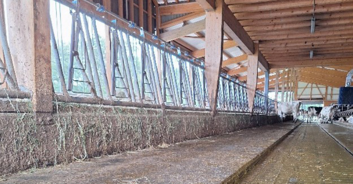 Une particularité de la ferme : les logettes remplies avec du sable.