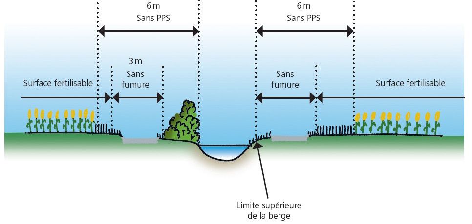 Les bordures tampon font partie des exigences PER. Elles visent à préserver les haies, les bosquets, les berges boisées, les forêts et les eaux superficielles des apports de fumure et de produits phytosanitaires.