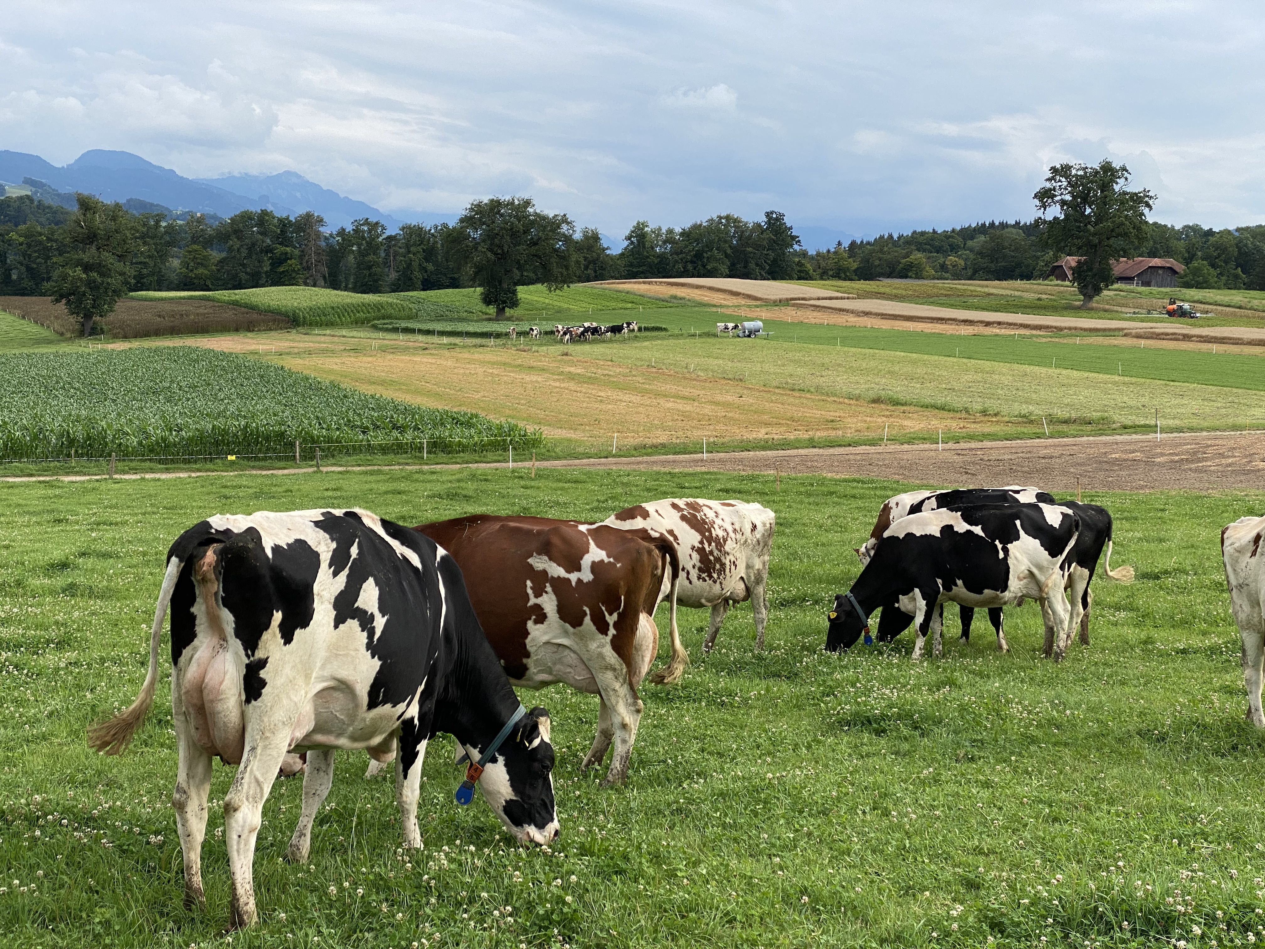 Des essais de pâture avec des vaches laitières ont été conduits en 2021, 2023 et 2024 sur la ferme-école de Grangeneuve. Le troupeau a été séparé en 2 lots de vaches à des stades de lactation équivalents ; les productions laitières pouvaient être différentes entre les 2 lots : un lot a pâturé l’HERBE habituelle des pâturages, et l’autre lot de l’Herbe du Soudan dénommée ci-après SORGHO (Sorghum bicolor sudanense, var Piper). Le but était de disposer de sorgho dès le début juillet. Durant la phase d’essai, les animaux ont pâturé durant la nuit, et ont reçu du fourrage sec à la crèche durant la journée. Globalement, le troupeau produit environ 9'000 kg de lait par vache, avec environ 1'000 kg de concentrés.